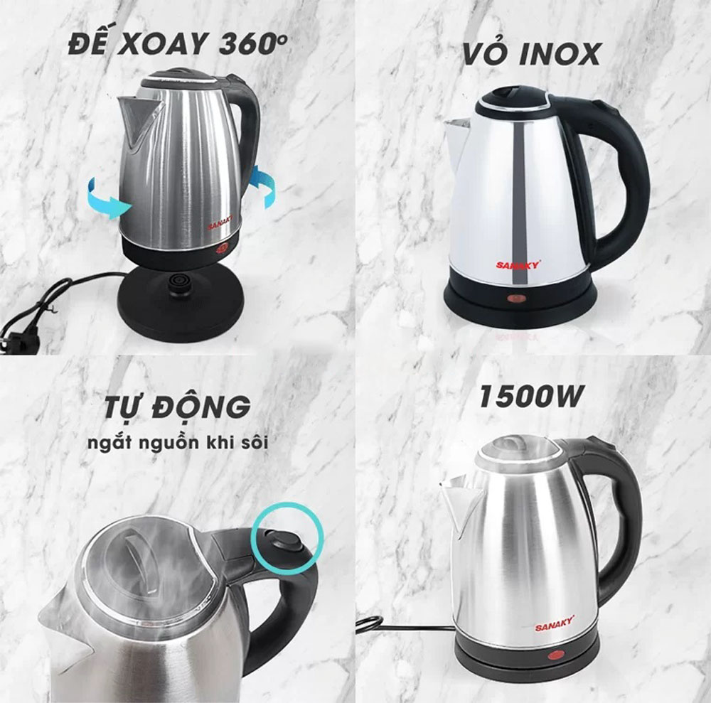 Ấm siêu tốc Sanaky SNK-18NS sử dụng chất liệu inox có độ bền cao và an toàn với sức khỏe người dùng.