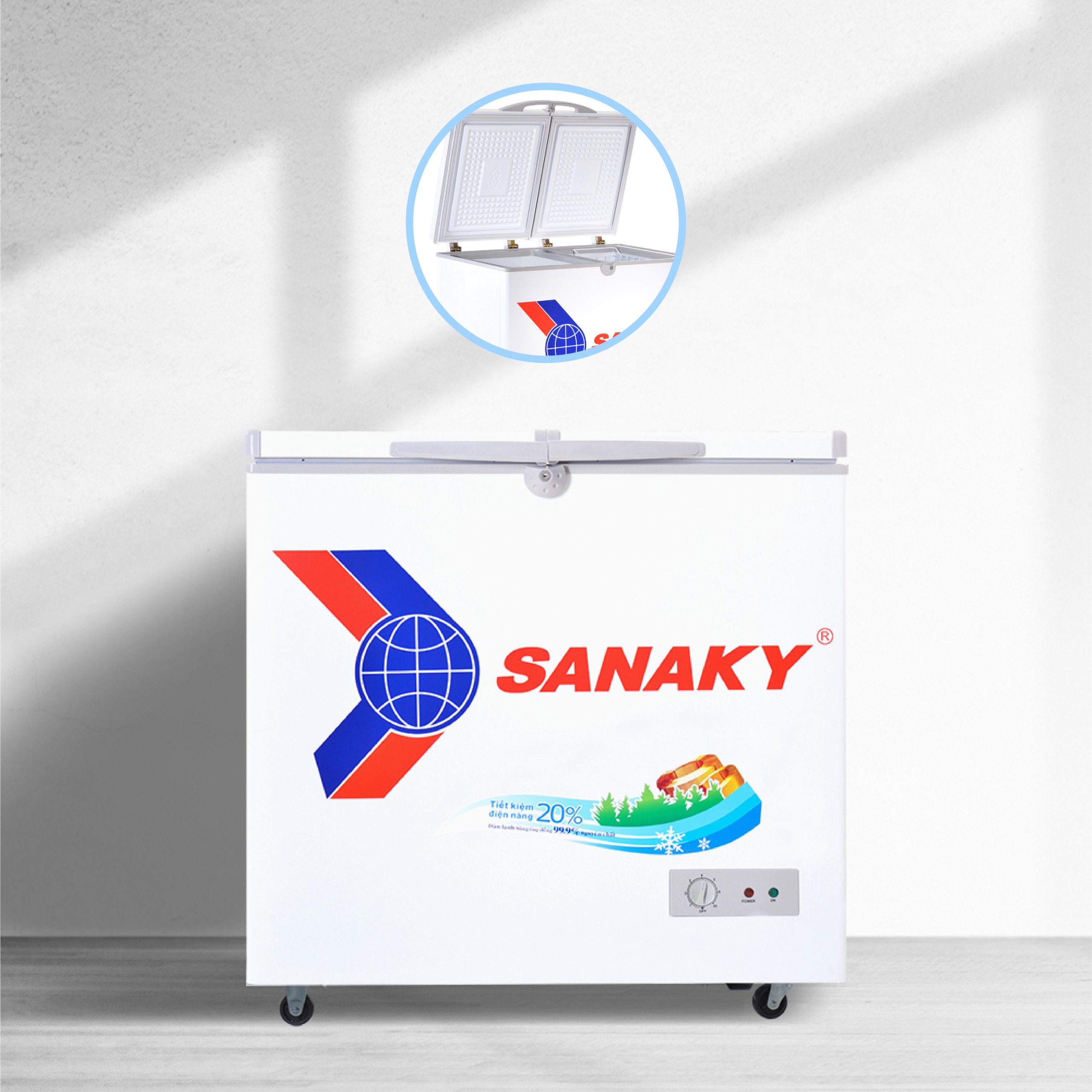 Các sản phẩm thuộc dòng này được thiết kế gồm 2 ngăn một ngăn đông, một ngăn mát. Thích hợp với các khách hàng vừa có nhu cầu bảo quản đông vừa có nhu cầu bảo quản mát. Ngăn đông của tủ có nhiệt độ 00c đến -180c phù hợp để bảo quản các loại thực phẩm đông lạnh. Ngăn mát của tủ có nhiệt độ từ 00c đến 100c là nhiệt độ lý tưởng để bảo quản các loại củ, quả, nước uống đóng chai,.... Dòng tủ này được ký hiệu chữ W ở cuối tên model như: tủ đông Sanaky VH-285W, tủ đông Sanaky VH-289W, tủ đông Sanaky VH-365W,...