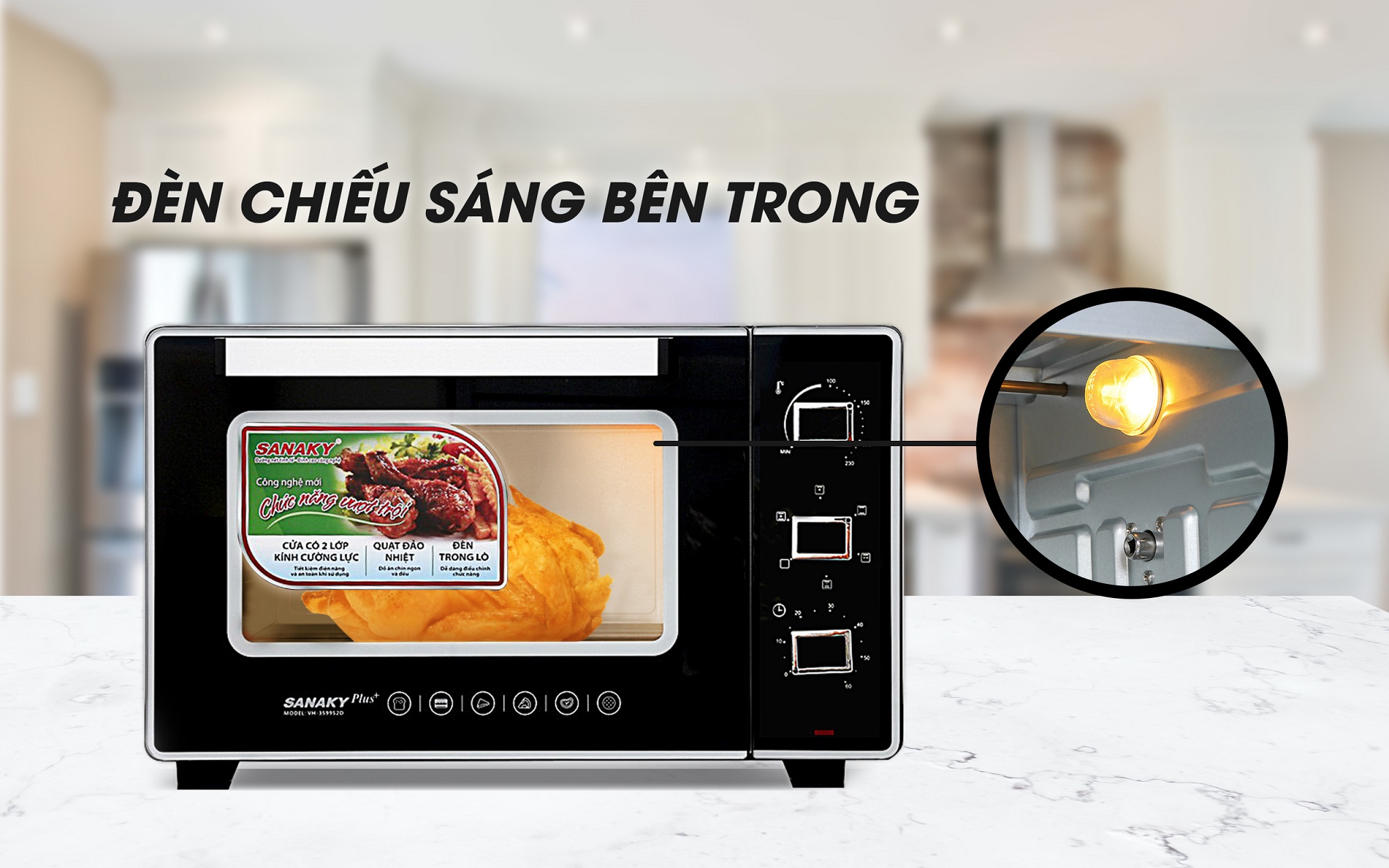 Khi sử dụng cửa lò làm từ kính cường lực 2 lớp cách nhiệt hiệu quả, giúp bảo vệ cho bạn khi vô tình chạm tay vào cửa lò đồng thời đảm bảo không cho nhiệt lượng thất thoát ra ngoài, gây hao tổn điện năng và ảnh hưởng đến khả năng hoạt động của sản phẩm, lò nướng sanaky VH 5099N2D còn được tích hợp đèn chiếu sáng trong khoang, cho phép bạn tiện theo dõi, kiểm soát quá trình hoạt động.