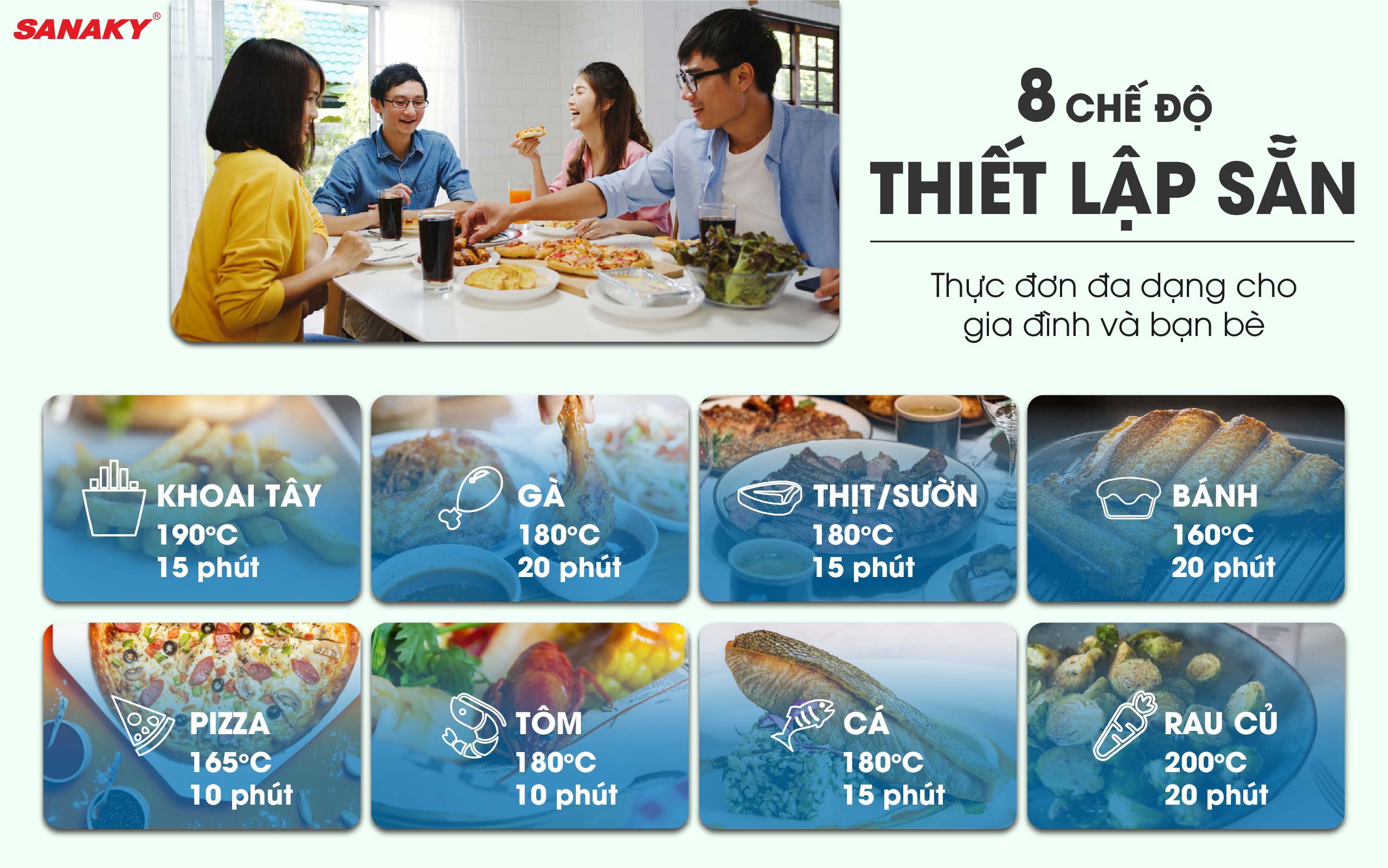 8 chế độ cho mọi loại thực phẩm