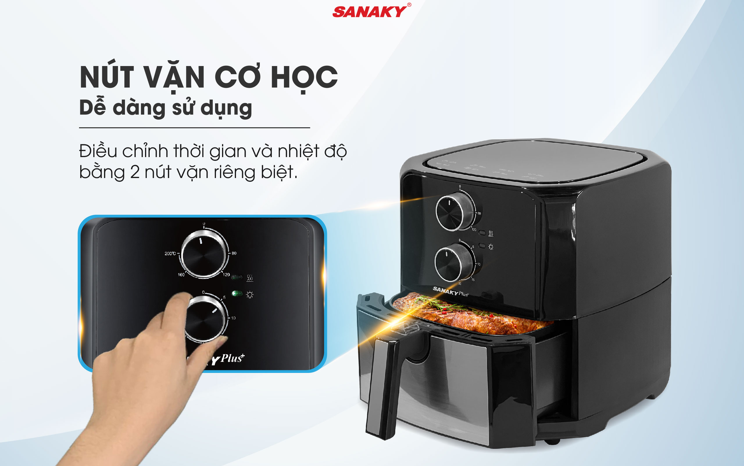 Điều chỉnh nhiệt độ và thời gian chưa bao giờ dễ dàng hơn với hai nút vặn riêng biệt.