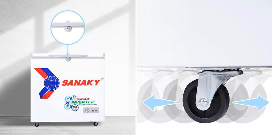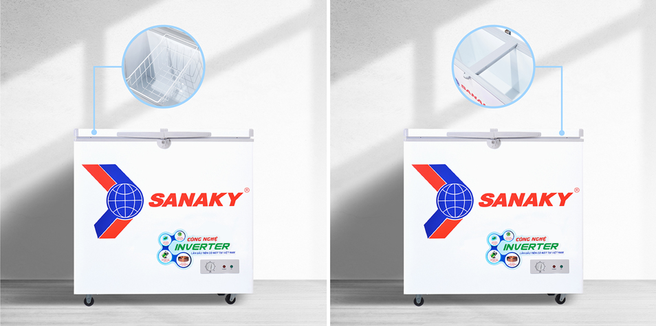 Tủ đông sanaky VH-2599A3 thiết kế 1 ngăn đông, 2 cánh mở vali, dễ sử dụng, hạn chế thoát nhiệt, tiết kiệm điện năng. Cửa tủ có khóa, an toàn sử dụng cho gia đình có trẻ nhỏ.