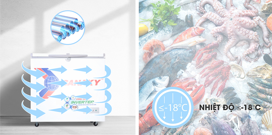 - Dàn lạnh ống đồng, lạnh nhanh và sâu hơn