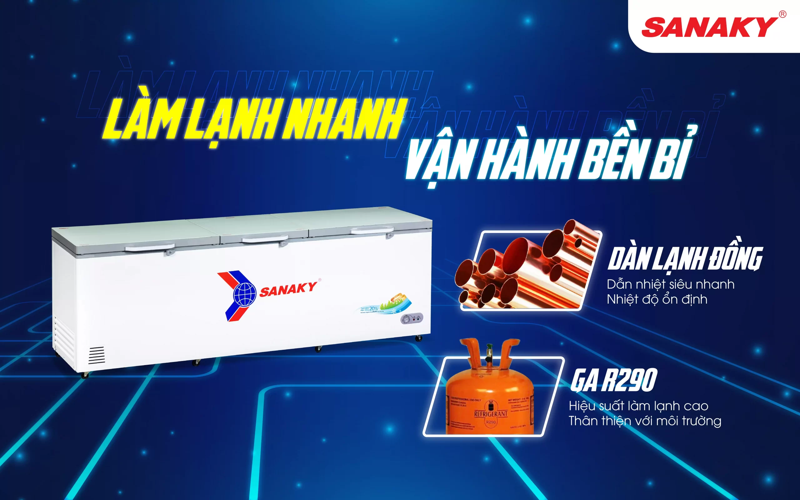 Tủ đông Sanaky VH-1199HYK Dàn lạnh bằng đồng, lạnh nhanh hơn